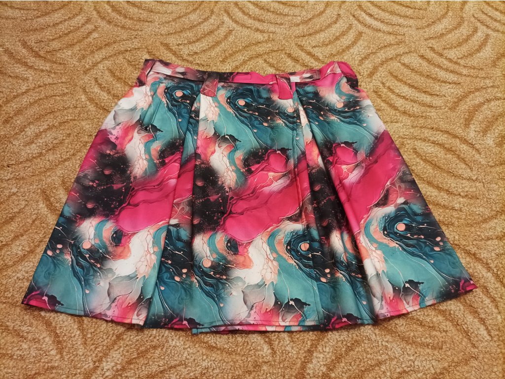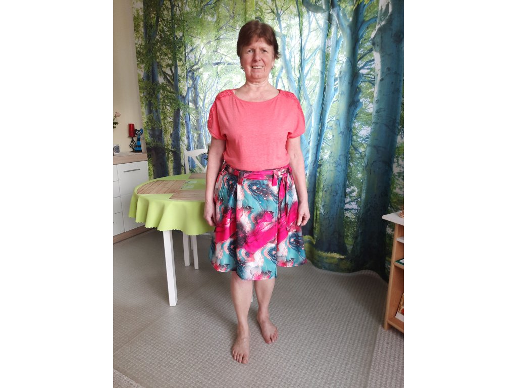 Vzor Magické barvy - dle aktuální nabídky - viz obrázky (obrázky sukně z kostkované látky jsou ilustrativní pro představu střihu). Na vyžádání Vám můžeme ušít i dlouhou sukni (viz poslední foto), kontaktujte nás ohledně ceny, látek apod.